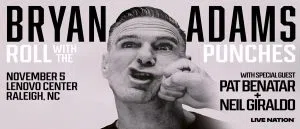 102.7 GNI has your very last chance to win tickets to see Bryan Adams live at Lenovo Center in Raleigh on Wed. November 5th, along with special guests, Pat Benetar + Neil Giraldo! Fill out your entry form below to be in the running to win!